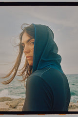 Where Performance meets art. Part of the Cardumen collaboration, Saguaro Trilogía features a V-neckline, functional hood, and long sleeves for elevated coverage and UV protection. The exclusive print reinterprets the harmony of a school of fish in a striking Trilogía motif.